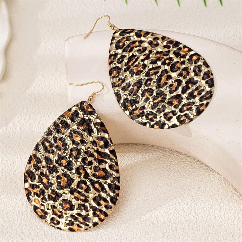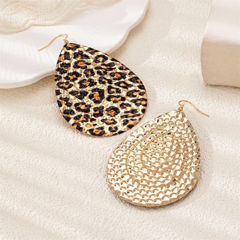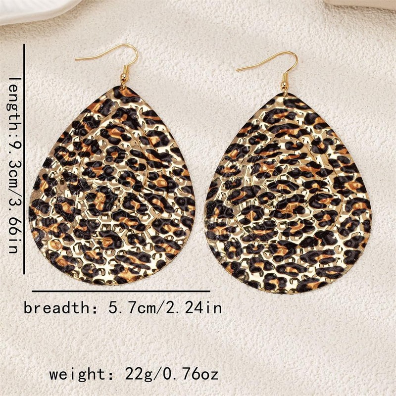 - Design Features: Vintage-Inspired Teardrop Shape with Textured Leopard Print Pattern and Gold-Plated Finish for a Bold, Statement-Making Look