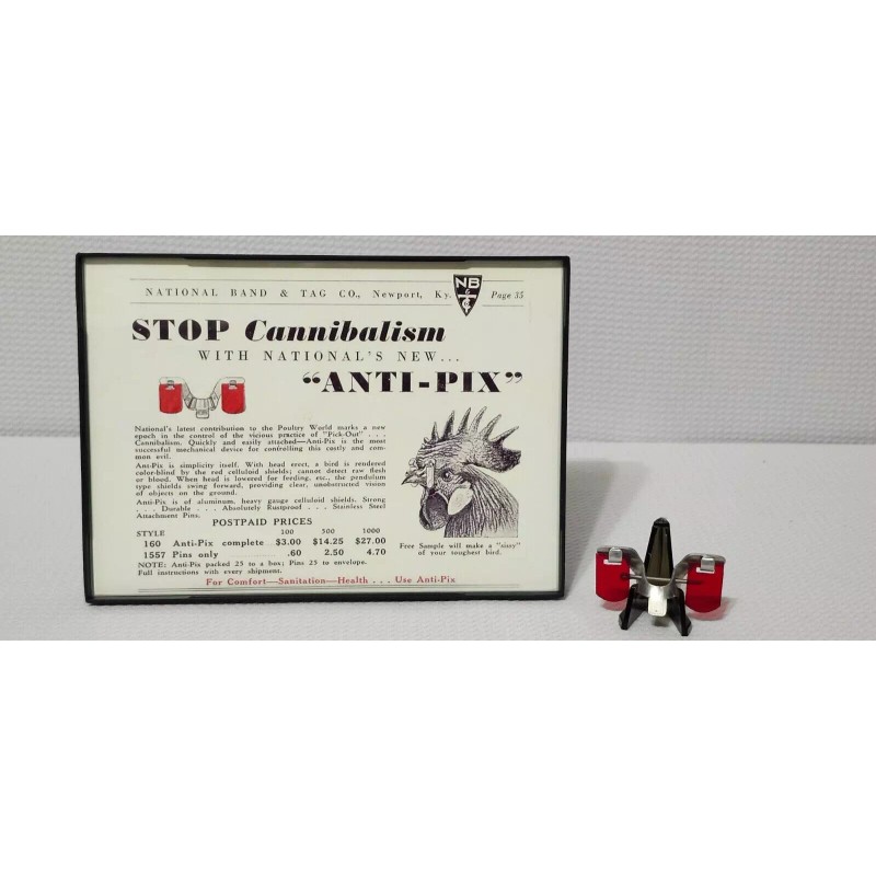 Vintage Pair of National Band &Tag Co. Red Chicken Glasses Anti Pix W/ Framed Ad