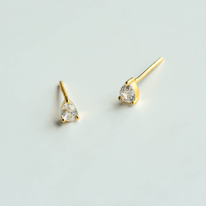 Vintage Pear Cut Stud CZ Earrings | Gold Plated | Cubic Zirconia Solitaire Studs