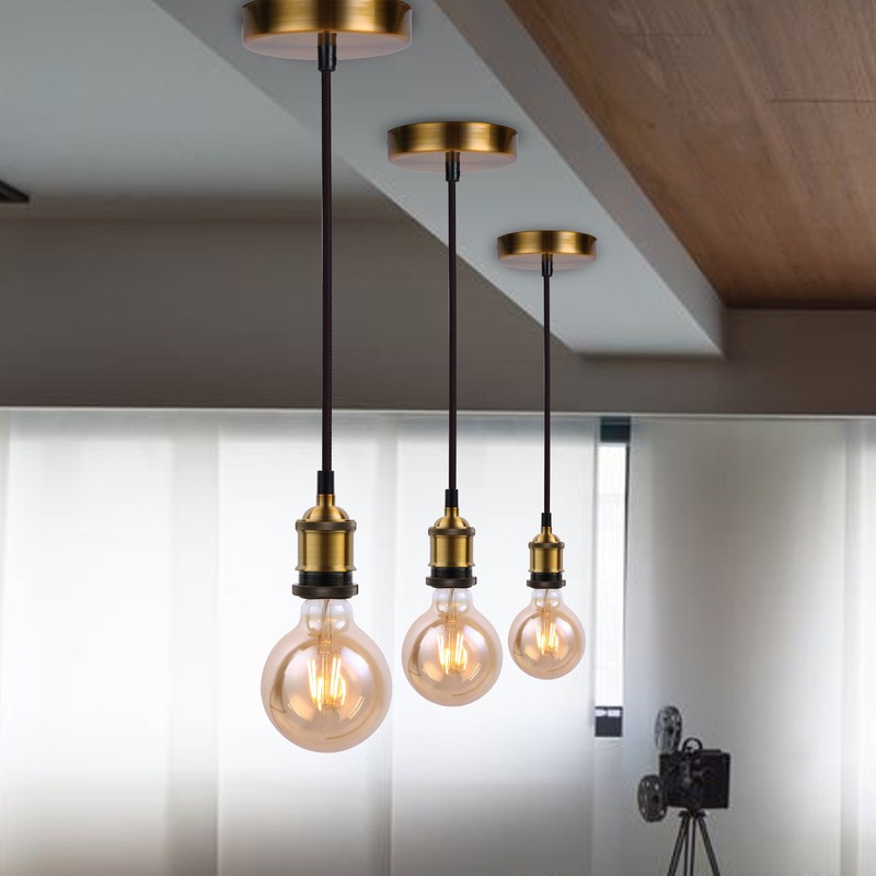 • Vintage Pendant Light Kit with 5 Different Colors(Antique Brass, Chrome, Satin Nickle, Rose Gold,Bronze Copper)