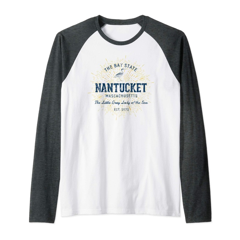 Vintage Retro Style Nantucket Raglan Baseball Tee