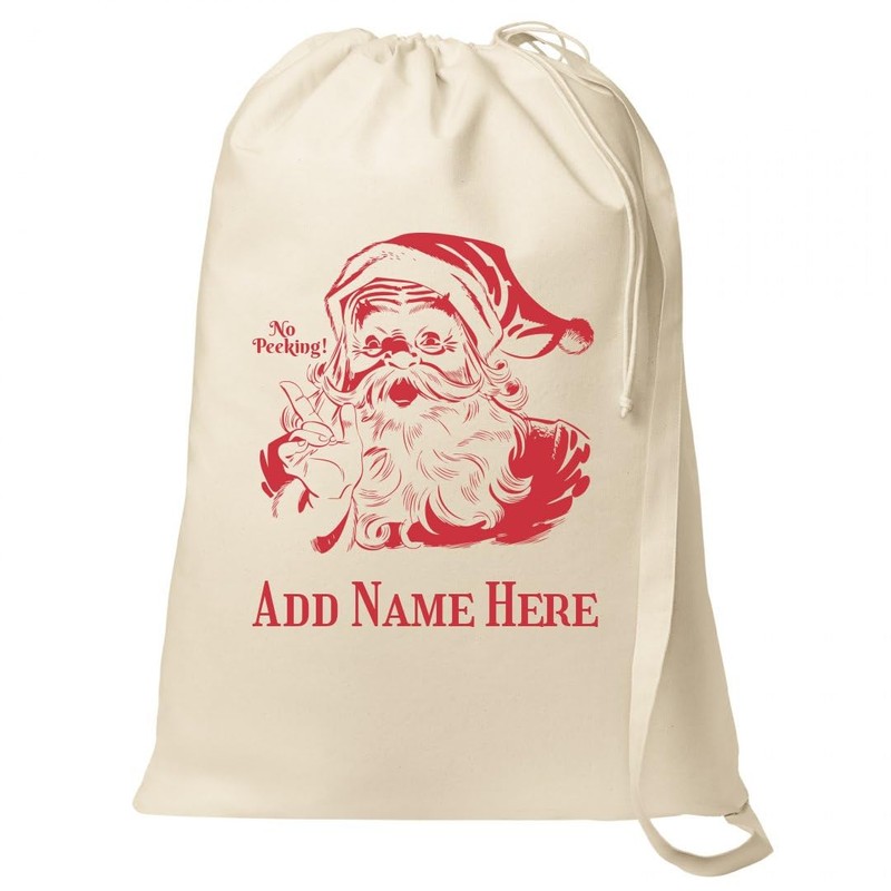 - No peaking! Keep your Christmas gifts hidden this season with this vintage Santa sack. This oversized present bag is great for giving Christmas morning a little extra pizazz. Personalized with the child's name. You can't go wrong with a custom accessory this holiday season.