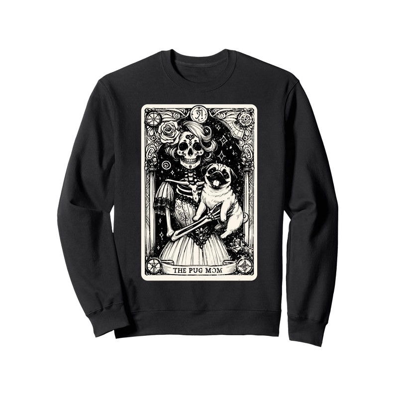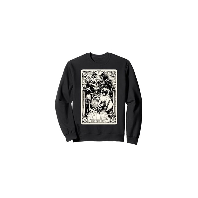 - Pug Mom Tarot Card skeleton tee for dad, mom, grandma, grandpa, uncle, aunt, auntie, nana, kids, dog lover, pet, owner, puppy, dog groomer, rescue or dog adopter, astrology enthusiasts, tarot readers, and fans of the celestial zodiac.