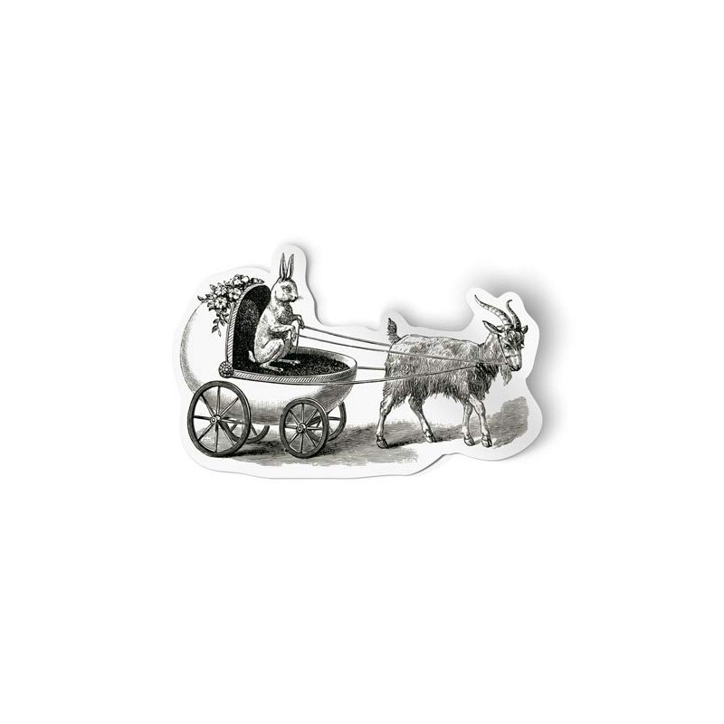 Vintage Style Easter Bunny Carriage and Goat Drawing Sticker Vinyl Decal Car Bumper Window 11" x 7"