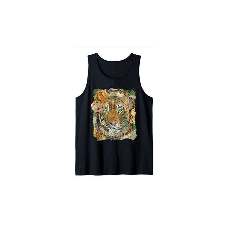Vintage Tiger Face Leopard Print Roses Camouflage Wild Cat Tank Top
