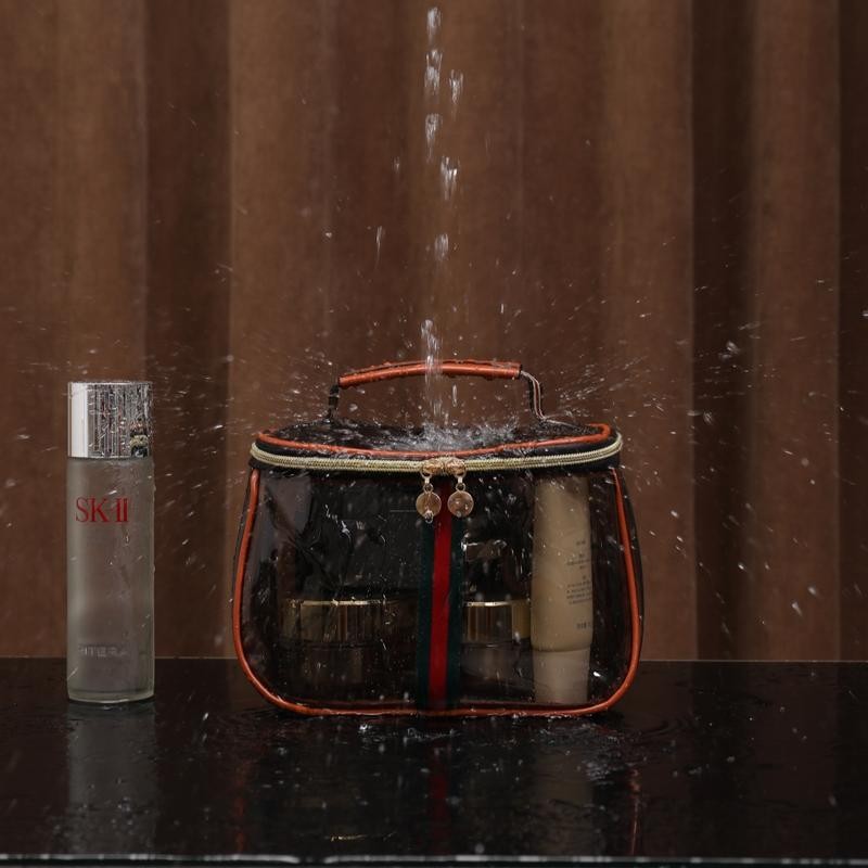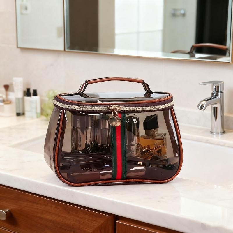 - Vintage Waterproof Transparent Storage Bag with Wide Handheld Design, Stylish Luxury Bag for Toiletries and Cosmetics, Large Capacity and Non-Restrictive Handle