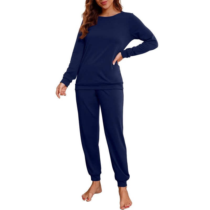 VINTATRE Womens Pajama Sets Long Sleeve Sleepwear Nightwear Soft Pjs Lounge Sets with Pockets Navy Blue-S