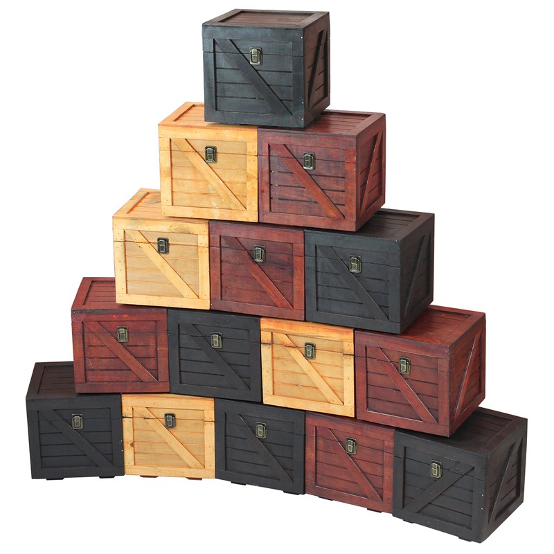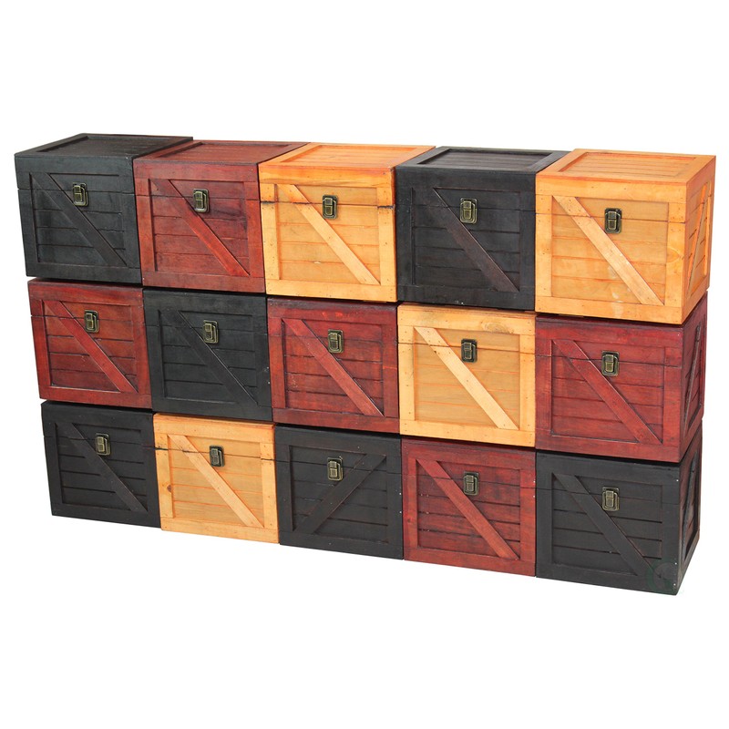 Designed to look like wooden cargo crates, this decorative wooden box provides ample storage space while adding a decorative touch to any room. Multiple crates can be easily stacked and arranged in many different ways.