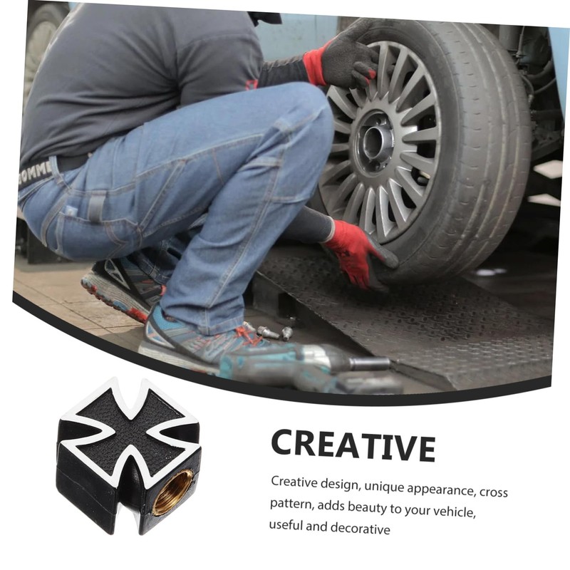 Unique cross style design, tyre valve caps are decorative and practical for cars. Decorative tyre valve caps.