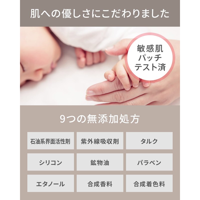 - クレンジング不要 ・ 石けんで落とせる ・ カバー力高い ・ナノ粒子不使用・タルク不使用・パラベン不使用・防腐剤不使用・紫外線吸収剤不使用・界面活性剤不使用・アルコール不使用・オイル不使用・シリコン不使用・無香料