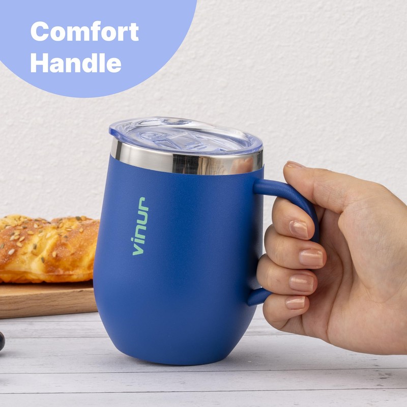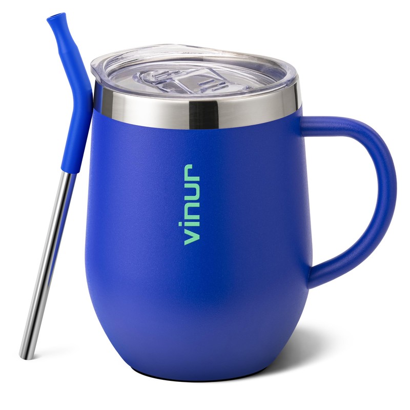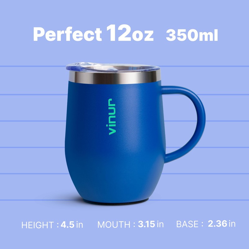 VINUR Kids Tumbler with Handle 12 oz Stainless Steel Double Wall Vacuum Insulated Tumbler with Lid and Straw, Leak Proof Water Cup for Travel(Navy)