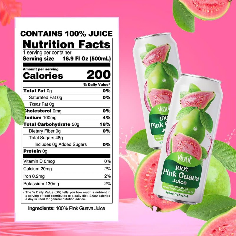 - 100% Pure Pink Guava Juice: VINUT Pink Guava Juice is made from 100% not-from-concentrate (NFC) Pink Guava, ensuring an authentic tropical flavor with no added sugar or artificial ingredients.