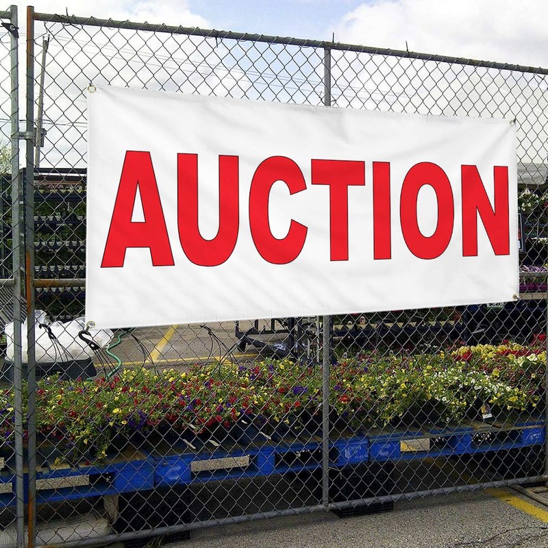 Vinyl Banner Multiple Sizes Auction Red B Business Outdoor Weatherproof Industrial Yard Signs 8 Grommets 48x96Inches