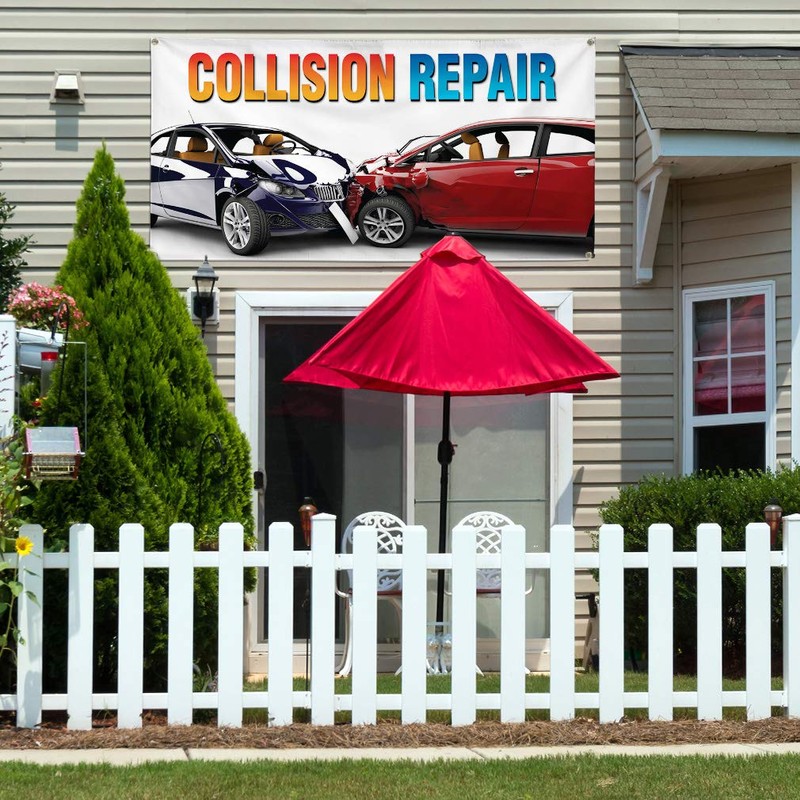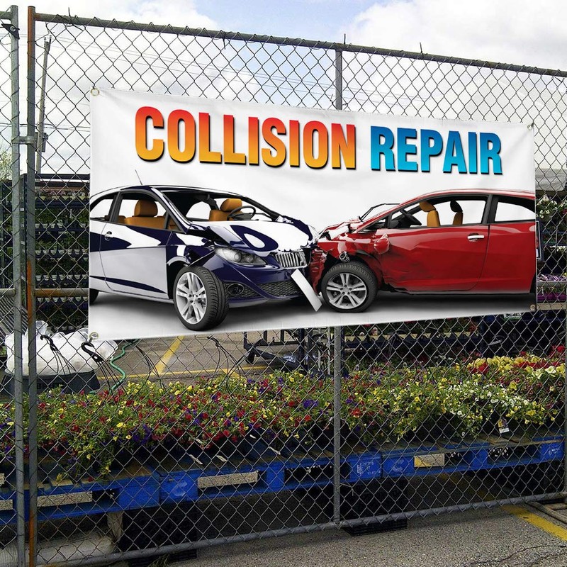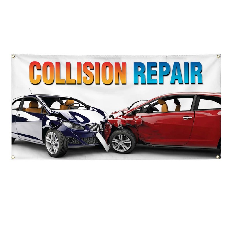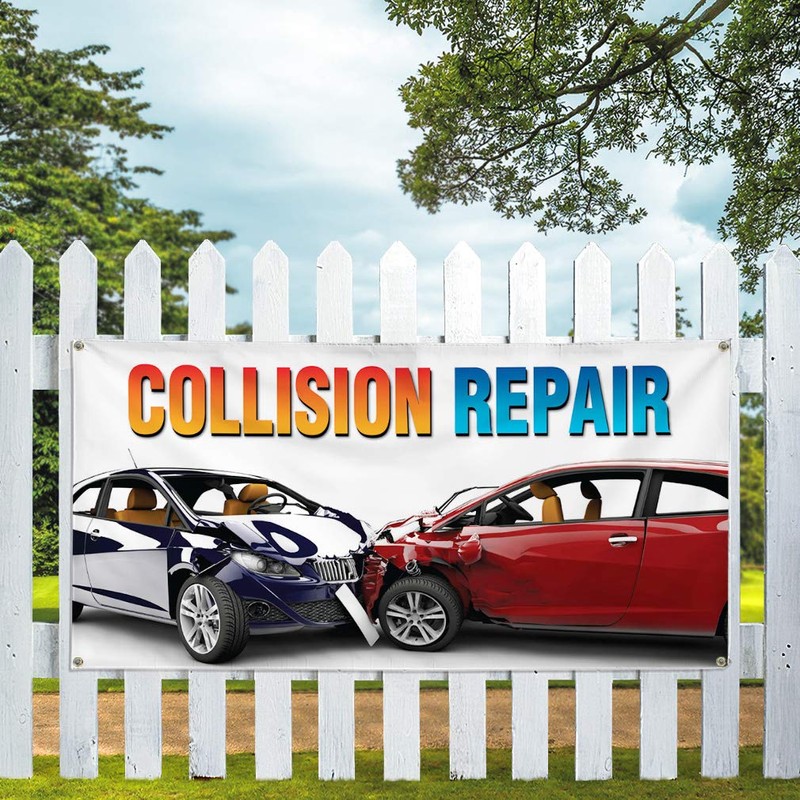 Vinyl Banner Multiple Sizes Collision Repair Auto Car Vehicle D Automotive Outdoor Weatherproof Industrial Yard Signs White 4 Grommets 24x48Inches