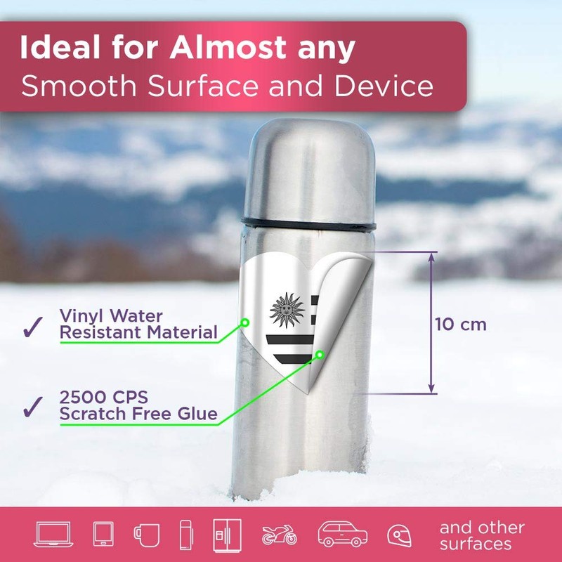 Vinyl Heart Stickers (Set of 4) - BW - America Montevideo Flag Uruguay Fun Decals for Laptops,Tablets,Luggage,Scrap Booking,Fridges #41821