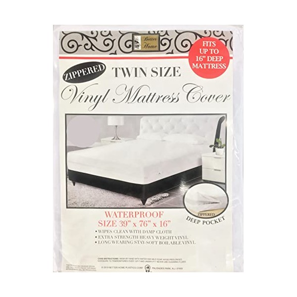 Vinyl Mattress Cover Zippered Encasement Protector Heavy Duty Deep Pocket (Twin, 16")