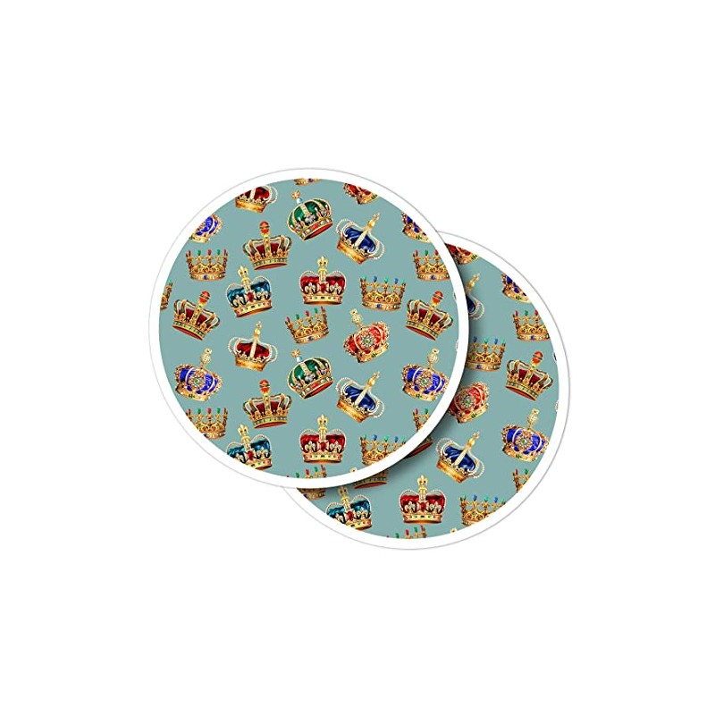 Vinyl Round Stickers (Set of 2) 10cm - Royal Crown Pattern Queen King for Laptops, Tablets, Luggage, Scrap Booking, Fridges #53379
