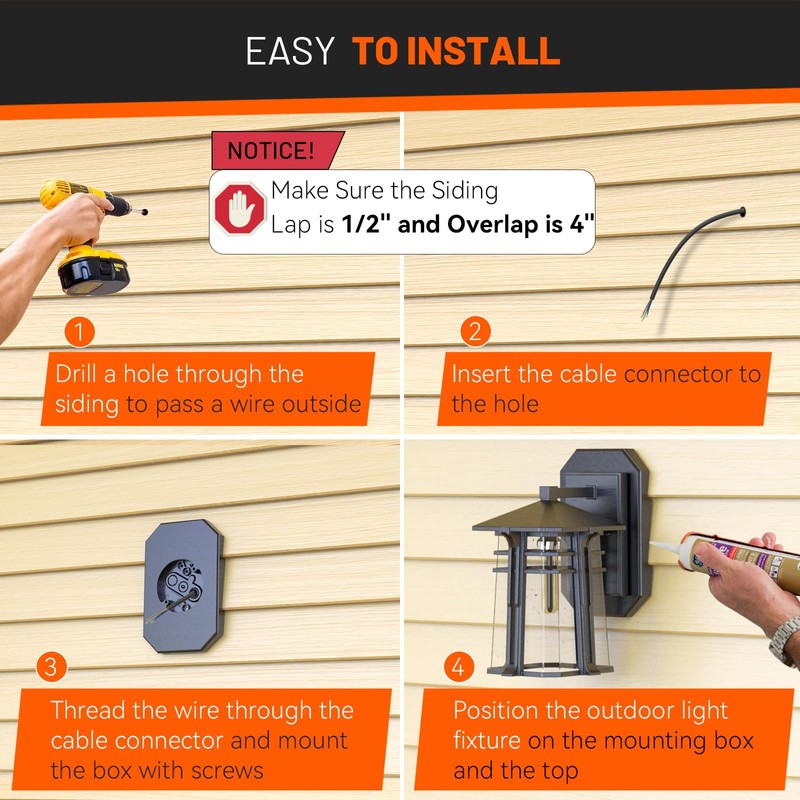 - Versatile Usage: Siding mounting kit is compatible with various siding types, fit for hardieplank lap siding,compatible with dutch lap. It allows you to mount a wide range of fixtures, enhancing flexibility and convenience