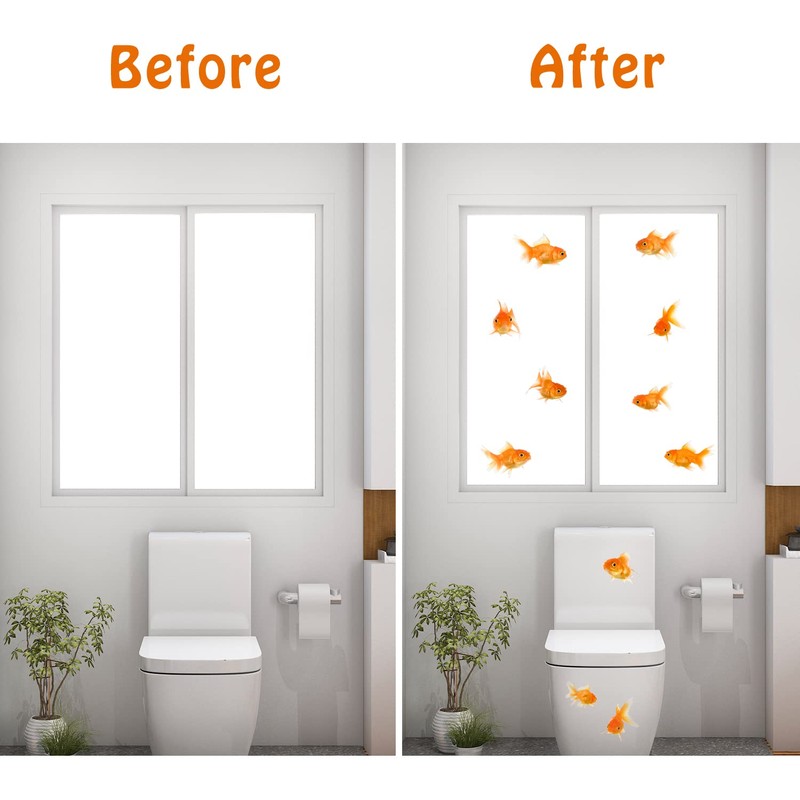 - ✿ Transparent Design Wall Decals: This goldfish stickers is transparent, no white edges. Specially designed for bathroom decor, kitchen decor or glass surfaces. Recommended for white background or other light color walls, and suitable for windows, doors, bathroom bathtub decor, toilet sticker decals, refrigerator dishwasher sticker decals, aquarium fish tank decor etc.
