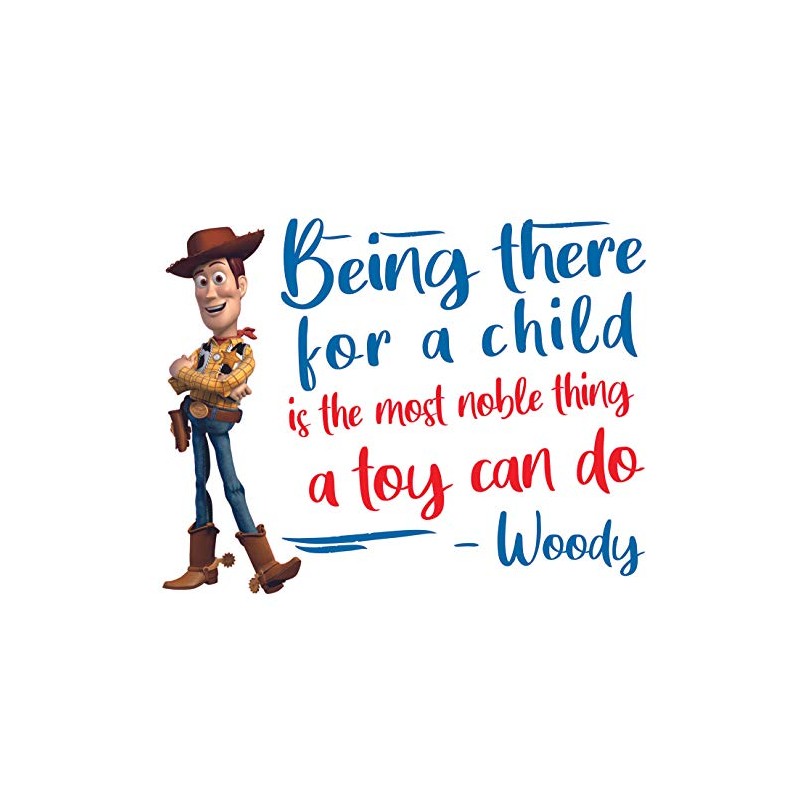 Vinyl Wall Decal: Being There for A Child is The Most Noble Thing A Toy Can Do - 15" x 20" Toy Story Sheriff Woody 3D Quotes | Kids Room Bedroom Home Sticker Décor