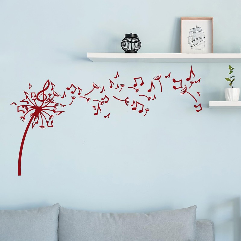 Vinyl Wall Decal Dandelion Flowers Music Notes Patterns Stickers Mural Large Decor (g1817) Black