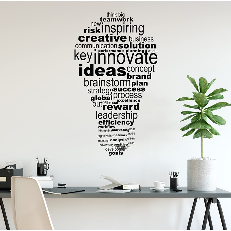 Vinyl Wall Decal Lightbulb Innovate Teamwork Business Office Inspirational Decor Stickers Mural (ig6516) Black (XL 42 in X 70 in)