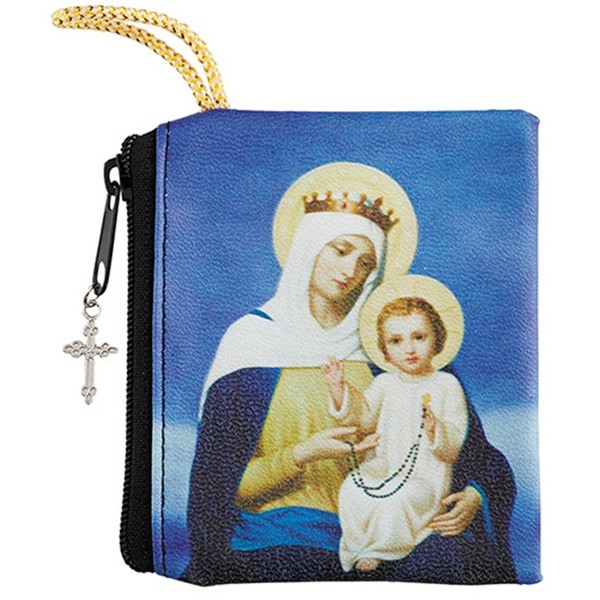 Vinyl Zipper Rosary Case with Full Color Printed Our Lady of The Rosary Image, 3 Inch
