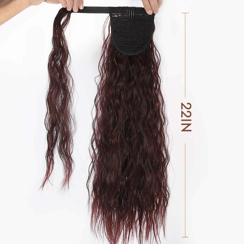 Vinzar Long Ponytail Extensions Synthetic Curly Wrap Around Ponytail Corn Wave Ponytail Hairpiece Magic Paste Black Ponytail for Women