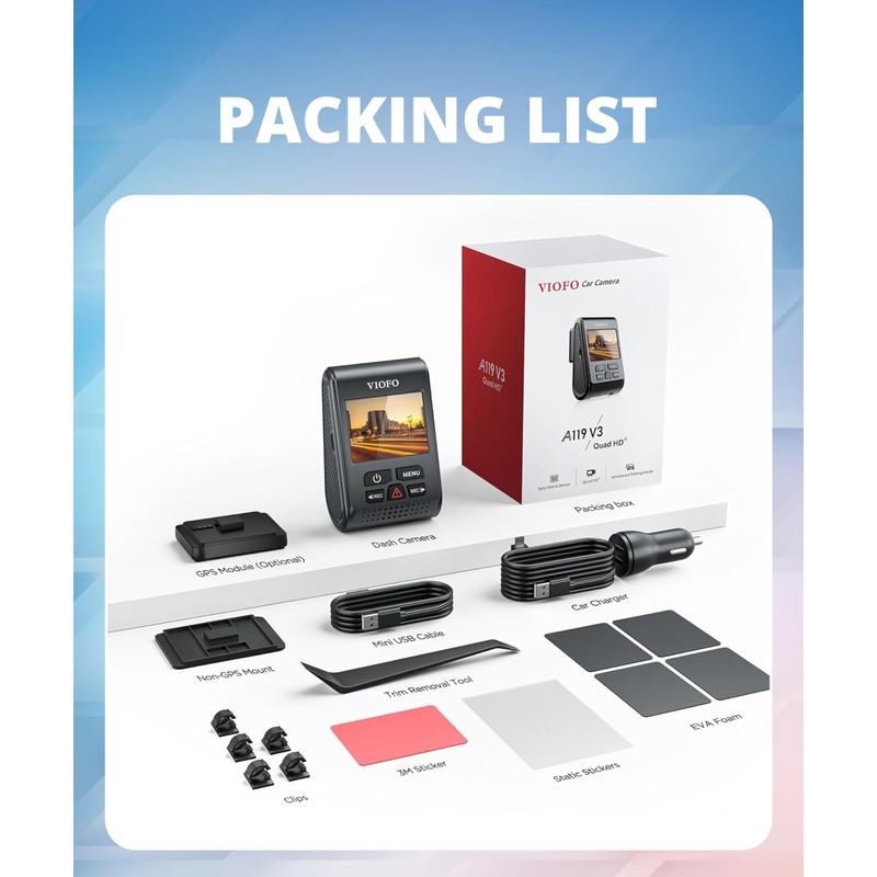 VIOFO Dash Cam A119 V3 2K 2560x1440P Quad HD+ 60FPS Front Car Dash Camera, 5MP STARVIS Sensor, 140-Degree Wide Angle, GPS Included, Buffered Parking Mode, True HDR, Motion Detection, Time Lapse