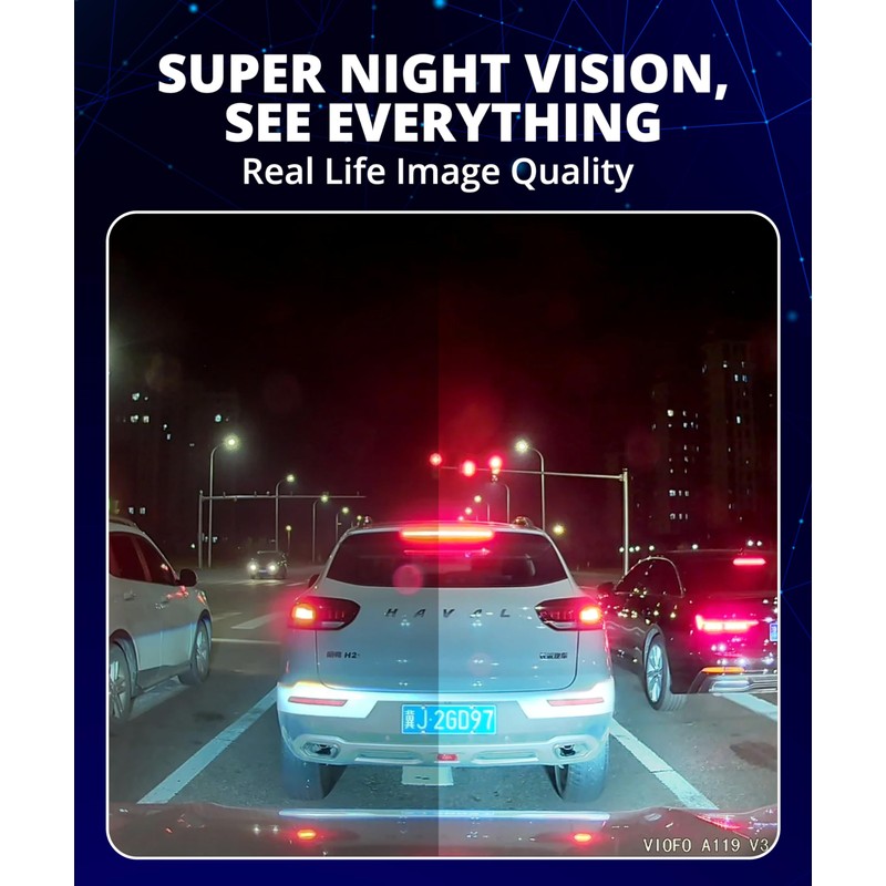 - Enhanced Night Vision Performance: Powered by the STARVIS image sensor, the A119 V3 car camera captures superior low-light footage with HDR technology, balancing highlights and shadows for crystal-clear images. License plates and other critical details remain legible, even under harsh lighting conditions at night.
