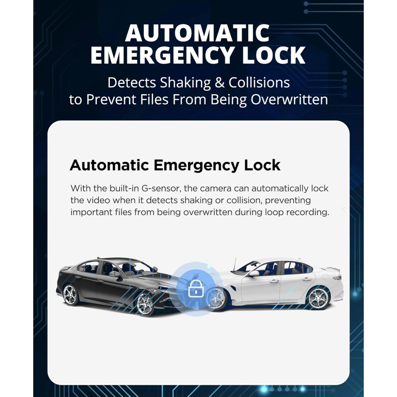 - Reliable Performance Features: Incorporates G-sensor for automatic emergency recording during sudden impacts or abrupt braking, loop recording for continuous operation, and support for microSD cards up to 256GB (U3 A2 V30 recommended). Additional features include a built-in microphone, auto start/stop functionality, and memory partitioning to keep important footage separate from all other recordings.