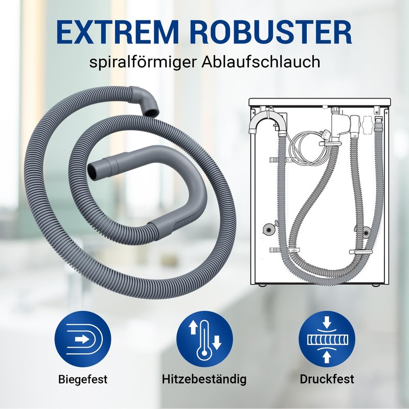 - Durable: the washing machine drain hose or flexible waste water hose dishwasher is robust and resistant to chemicals as well as to low and high temperatures