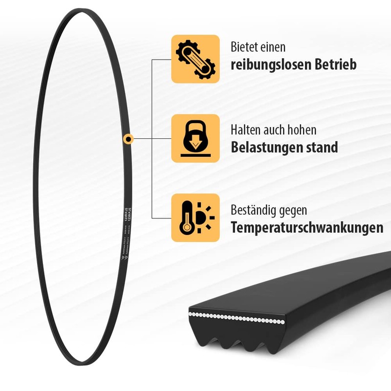 - Belt: Elastic V-belt with coarse ribs type PJ for washing machines. V-ribbed belts should be replaced after a few years of operation for optimal operation