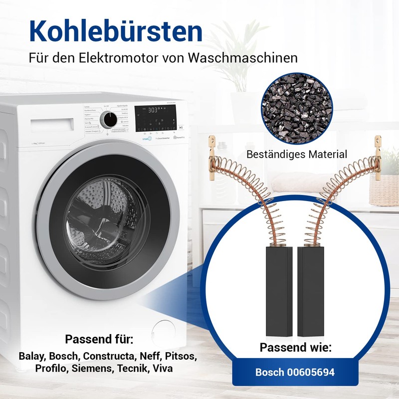 - Contents: these motor carbon washing machines from VIOKS are a complete replacement for Bosch carbon brushes 00605694 / original Siemens carbon brushes / Neff motor carbon brushes