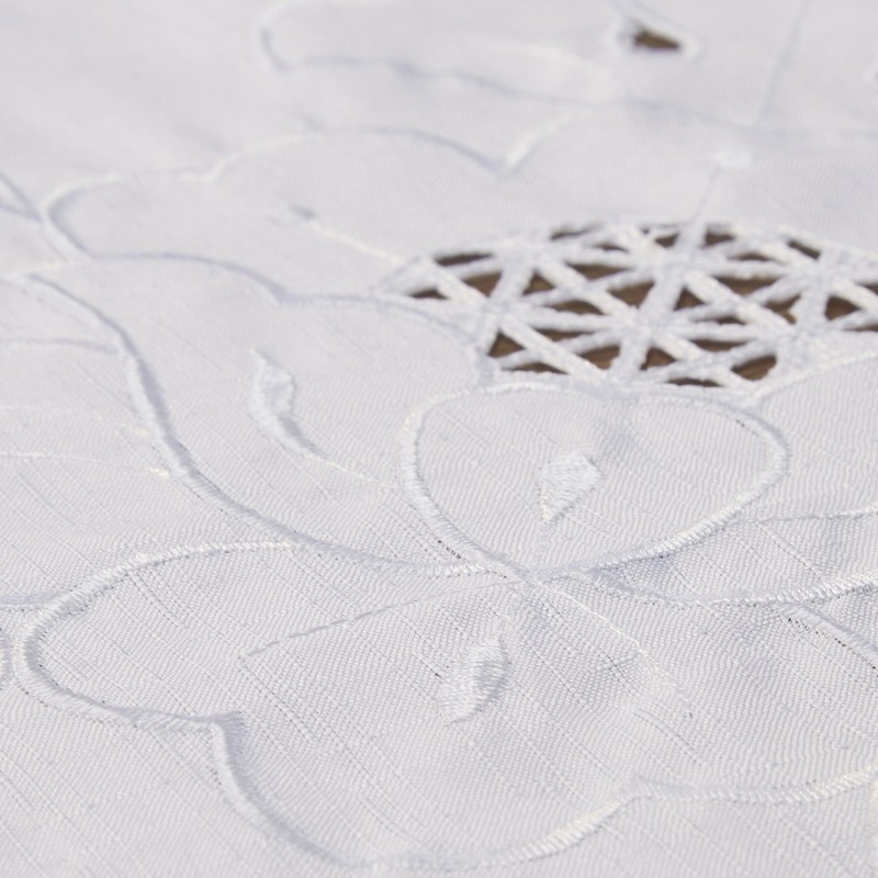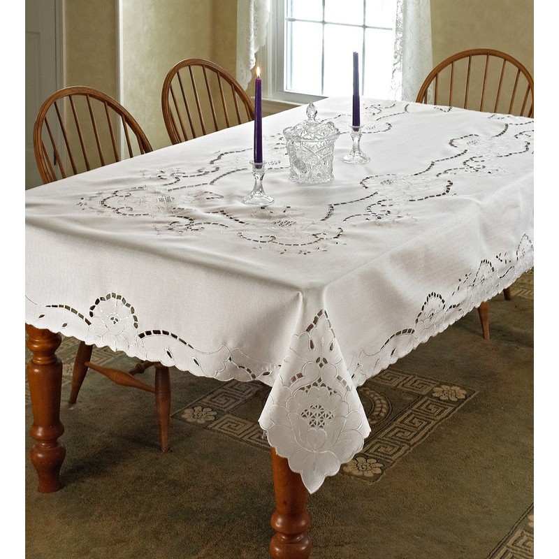 Violet Linen Sapphire Embroidered Design Tablecloth, 60 in, White