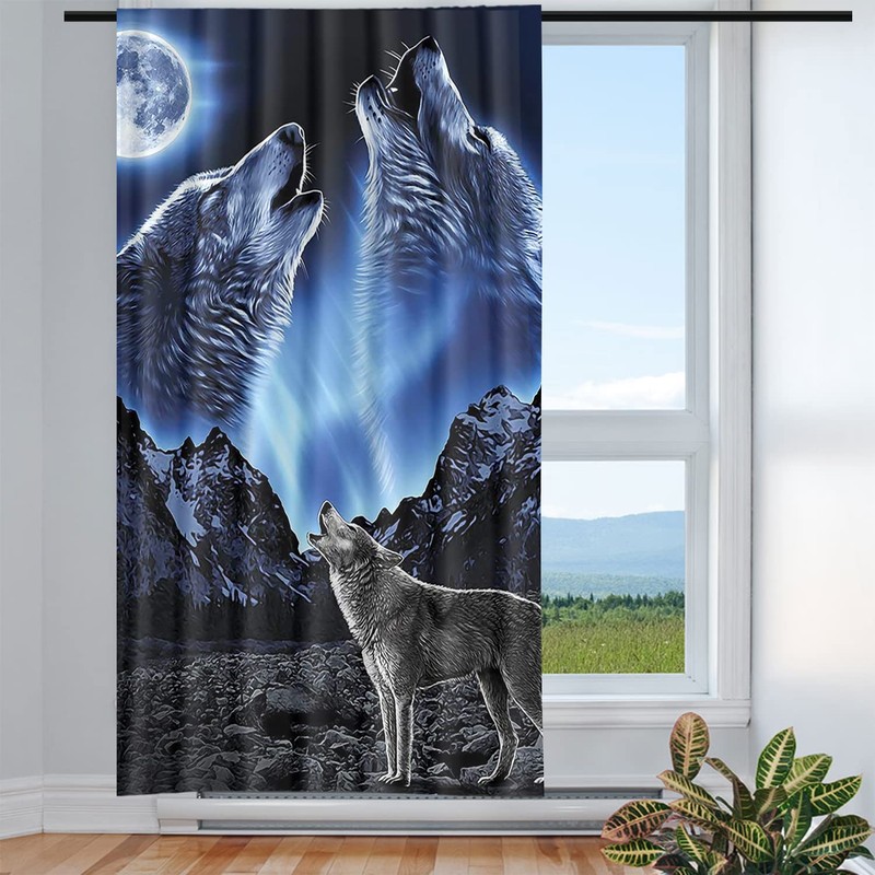Violetpos Curtains for Living Room, Bedroom, 1 Piece, Wolf Howling on the Moo...