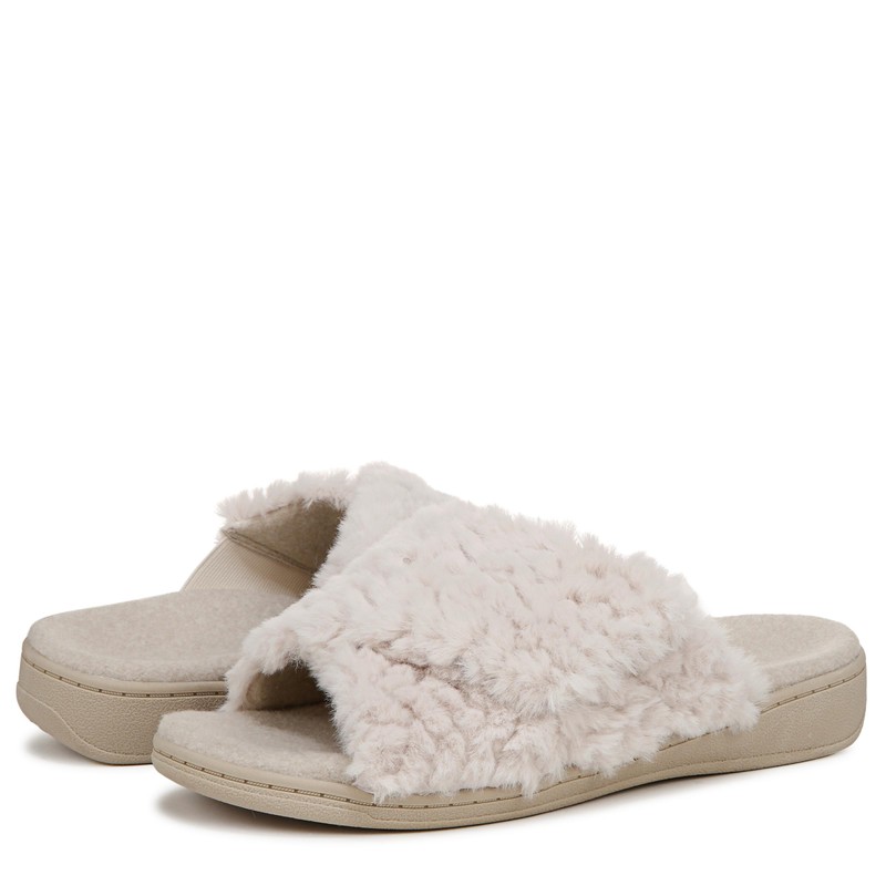 VIONIC Women's Relax Ii Slides Mary Jane Flat, Off White Fabric, 9
