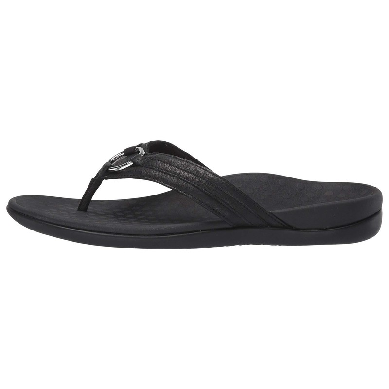 Vionic Women's Tide Aloe Toe-Post Sandal - Ladies Flip- flop with Concealed Orthotic Arch Support Black Leather 5 Medium US