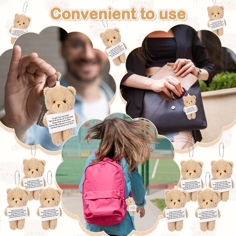 • Package Includes: you will receive 20 pieces of mini worry bear keychain, sufficient quantity and suitable size to meet your needs, suitable for someone you love, let them know how much you love them, make them happy