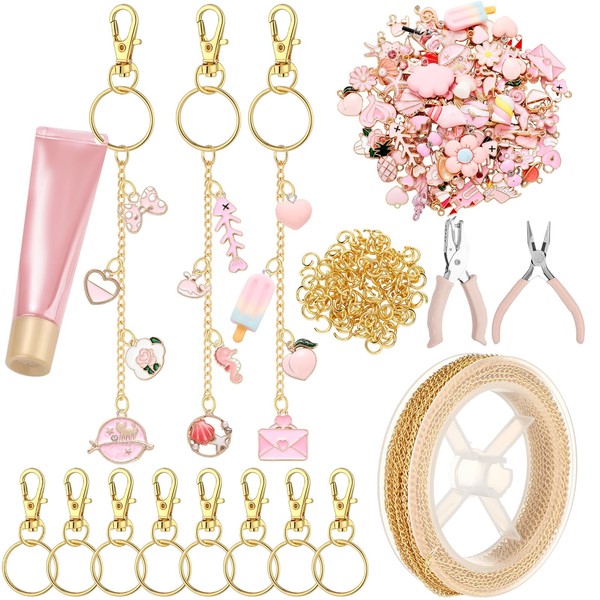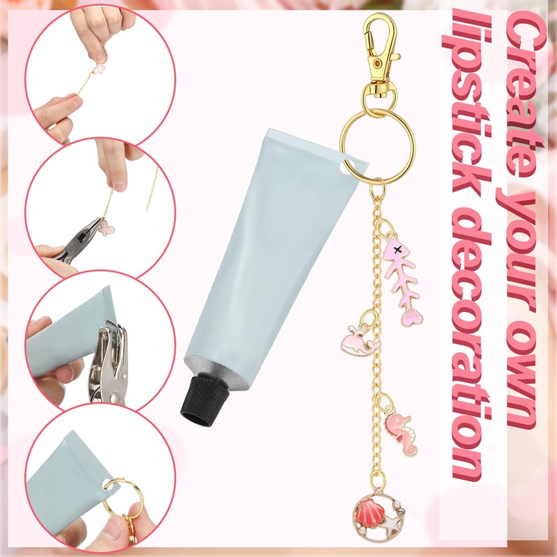 - Creative Accessories for DIY Lip Gloss Keychain: unleash your creativity with our DIY Lip Gloss Keychain Kit, featuring 100 charms, 10 keychain clips, 100 jump rings, 1 roll chain, pliers, and a hole punch; Suitable for crafting jewelry, lip balm keychains, and more