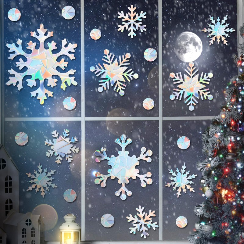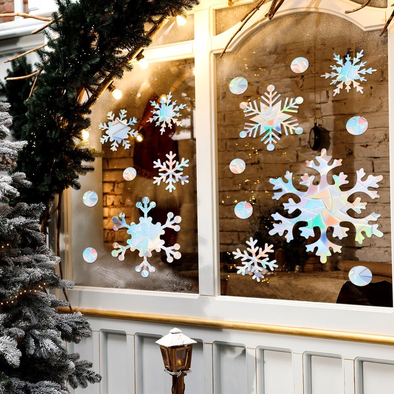 - Package Includes: each package includes 24 large sized snowflake window clings and 52 snowball window stickers, they can catch the sun's rays and turn them into bright rainbows in the room; The quantity is enough for your holiday party window decorations