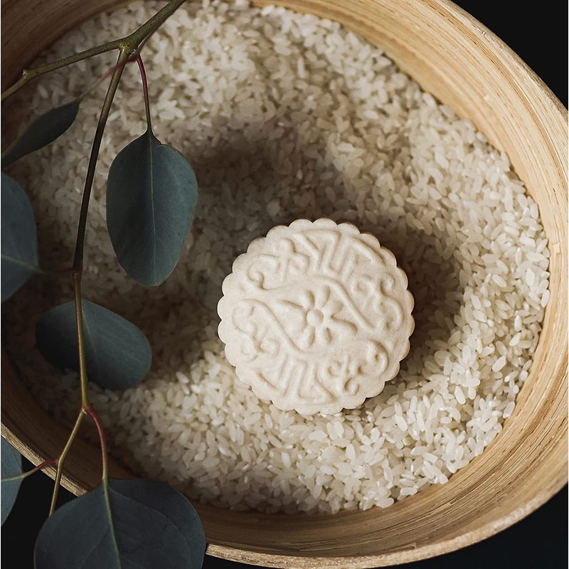 Musky, sweet, vanilla-scented rice water shampoo bars reminiscent of the amber