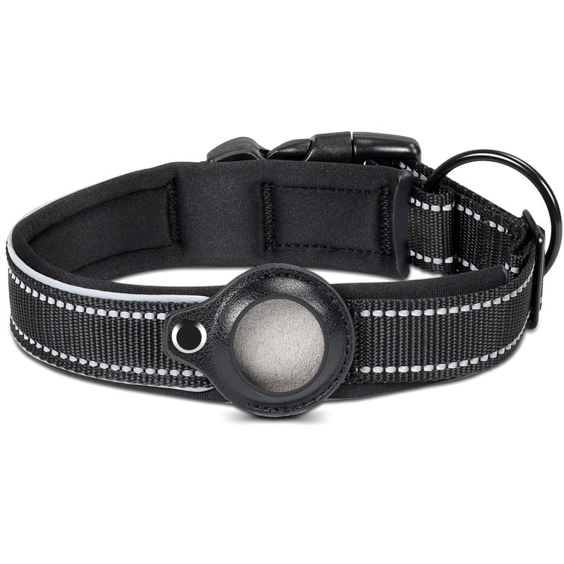VIOSOON Collar de Perro Reflectante, Acolchado Forro de Neopreno Collar para Gatos y Perros, etc, Hebilla Ajustable Collar de Seguridad, Collar de Nylon para Perros Pequeños Medianos Grandes(Negro M)