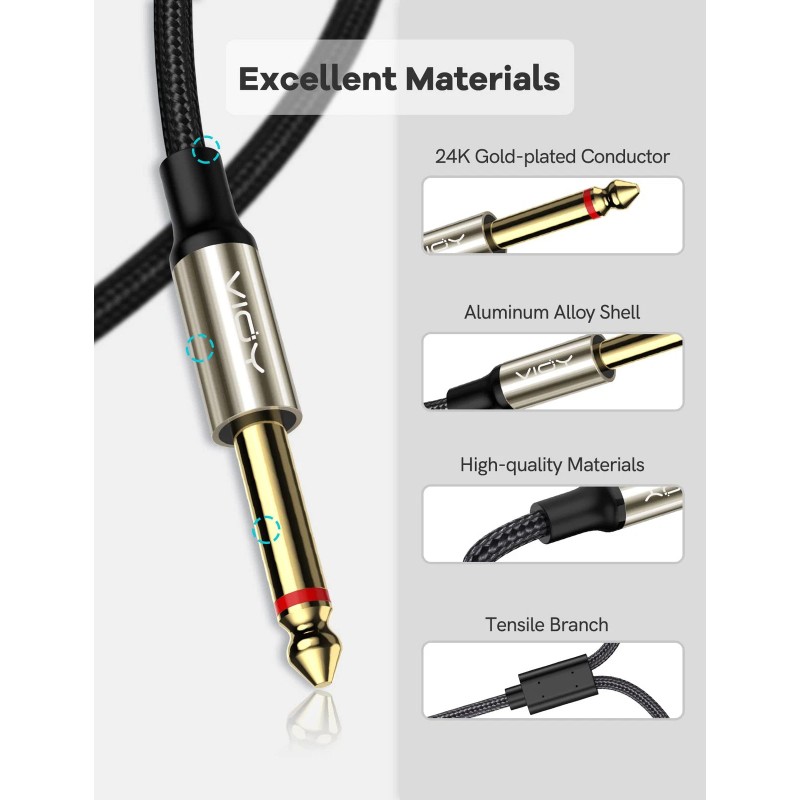 Well-made Materials: 3.5 mm to dual 1/4 Stereo Splitter Cable uses brass plating shell and gold-plated plugs, improved the durability and stability, reduce EMI/RFI interference. Cotton mesh braided covers prolong uses life
