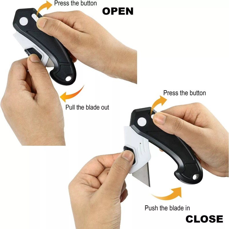 - Package Includes Set of 6 Light Weight Folding Utility Knifes. Size Open 6 1/2 Inches. Size Closed 4 1/4 Inches.