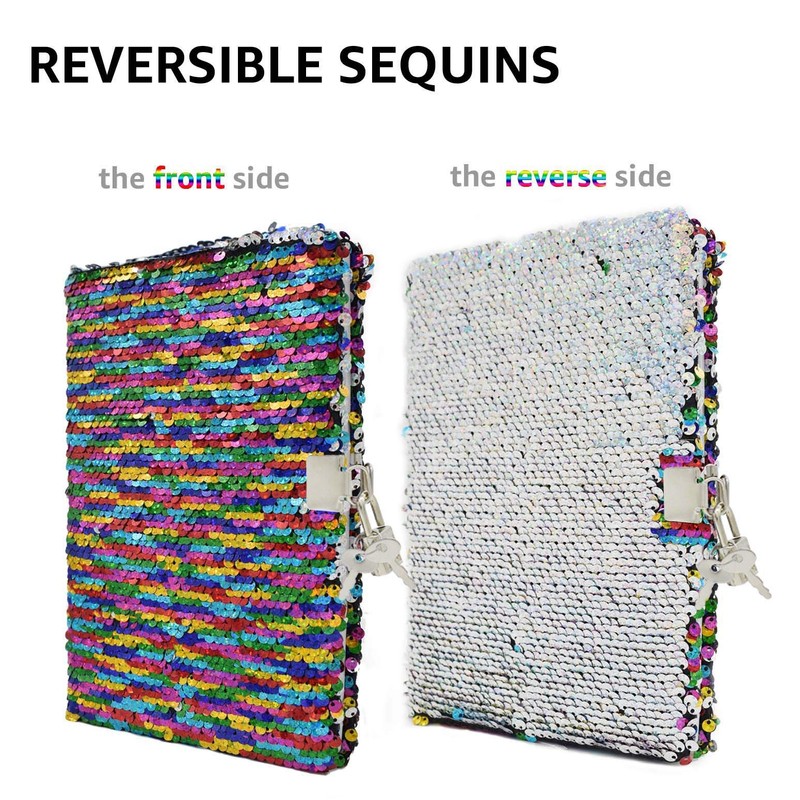 - MATERIAL: Sequin cover & 60lb/90gsm paper, INNER PAGES: Horizontal line writing paper 78 sheets(156 Pages), DIMENSION: 8.5” x 5.5” x 0.8”/21.5cm x 14cm x 2cm, Perfect A5/half letter size notebook for easily carry and store.