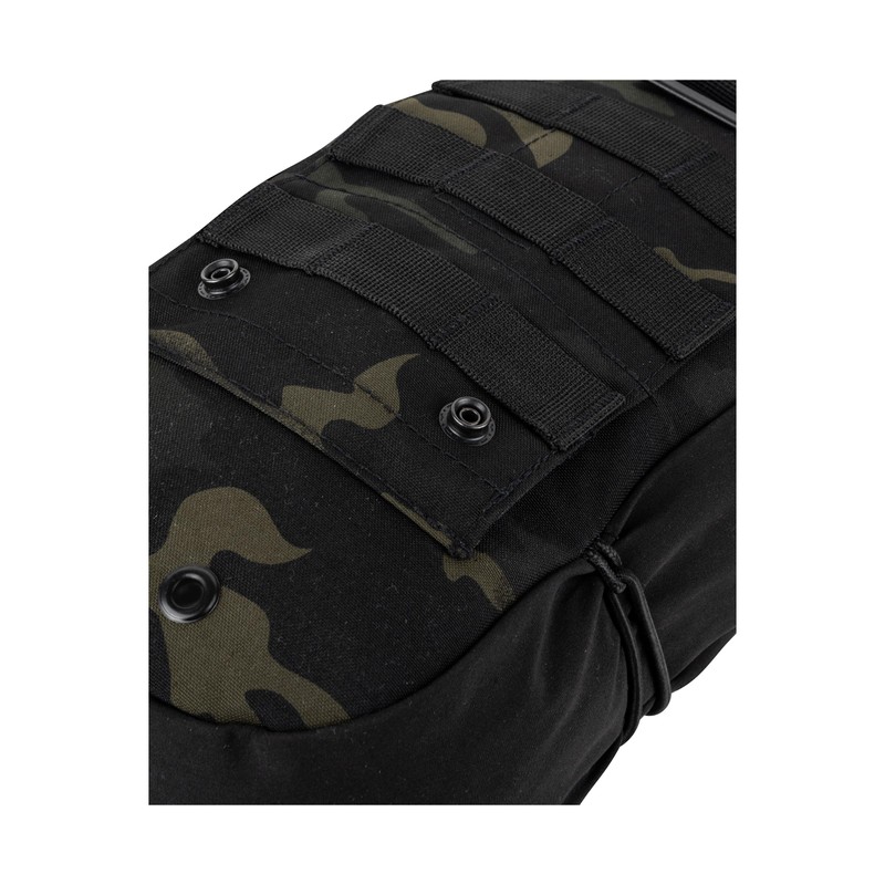 - PALS webbing platform on the back. Two fastening straps equipped with press studs. Outer shock cord for lashing or adjusting the bag to the size of the kit being worn. Multiple belt loops: 5 cm, 7 cm and 10 cm