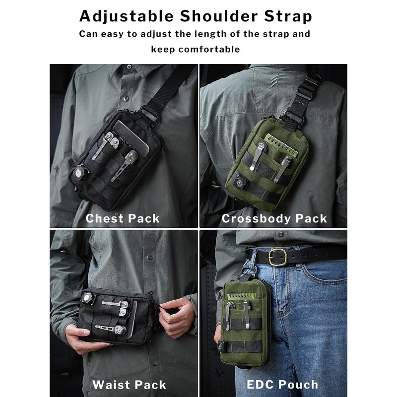 - 【Multipurpose EDC Fanny Pack Pouch Organiser】This utility EDC organizer molle pouch has multifunctional ways for carrying. With shoulder strap, you can take this tactical organizer pouch as a chest bag or sling bag. This EDC pouch can also be used as a waist bag while using the strap. Multiple usage options to meet your individual needs. It's the best choice to organize your edc tools and suit everyday carry.