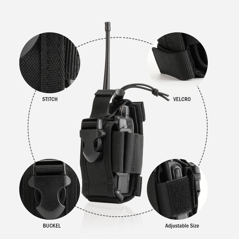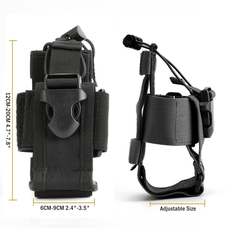 - 【Features】:Multifunctional radio holder case, adjustable storage tools pouch; Adjustable size, two way radio holster; MOLLE System, easy to attached to MOLLE-webbed vests, rucksacks and belt Drainage hole; The collection is stable and easy and convenient.