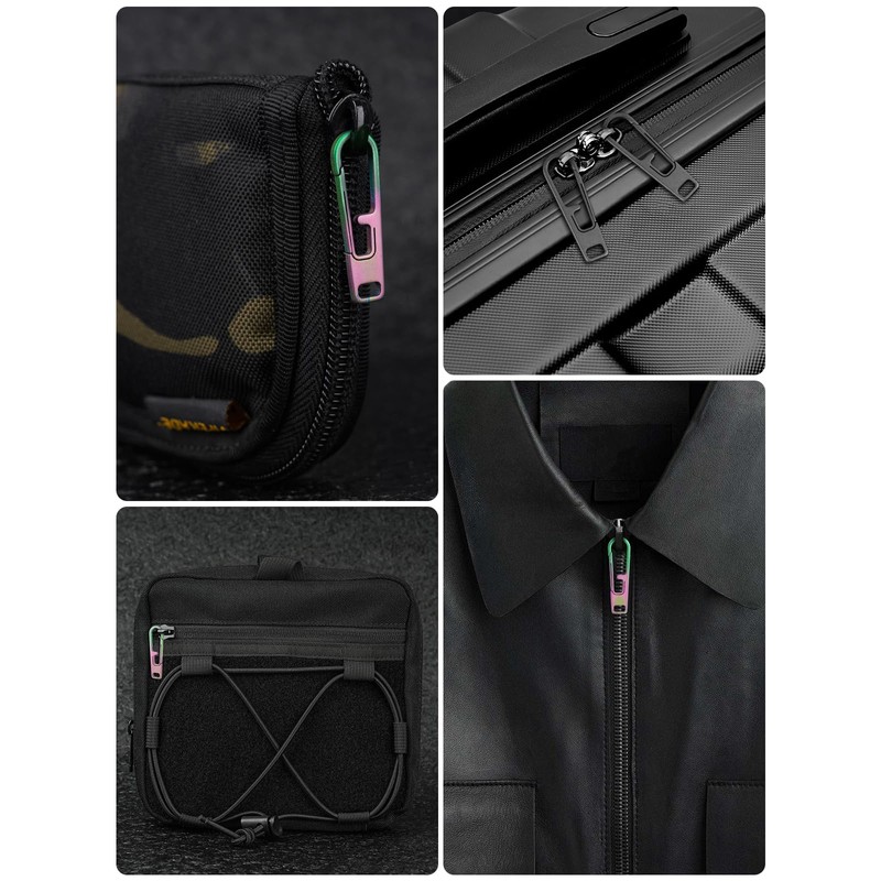 - Reliable Spring Structure: The integrated titanium alloy spring structure fully leverages the toughness of titanium alloy, ensuring long-lasting durability and stability, making this zipper pulls hard to be deformed